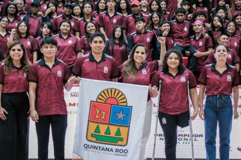 CANCÚN.- Al destacar que son un orgullo para Quintana Roo y con ello desearles todo el éxito para lo que serán unas próximas semanas de intensas competencias, la gobernadora Mara Lezama Espinosa abanderó a los más de 800 integrantes de la delegación deportiva de Quintana Roo, la más numerosa en la historia, entre ellos atletas, paratletas, entrenadores, delegados, jueces y staff, que participará en la Olimpiada y Paralimpiada Nacional Conade 2026.