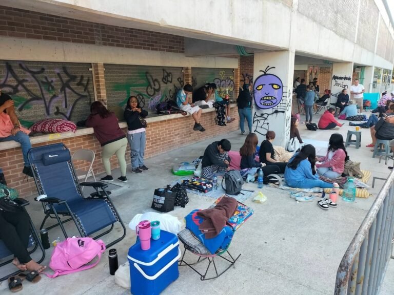 La fila se extendió por varias calles aledañas, alcanzando la zona de la Casa de la Cultura y el Planetario, mientras algunos asistentes instalaron casas de campaña, llevaron cobijas e incluso alimentos para pasar la noche y no perder su lugar.