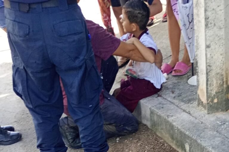 Chetumal.- Un menor de edad resultó lesionado la mañana de este viernes, luego de que una patrulla impactara contra la motocicleta en la que viajaba en compañía de su padre, en calles de la colonia Pacto Obrero Campesino