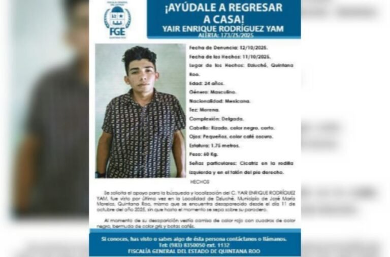 En caso de contar con datos sobre su paradero, se pide comunicarse al (983) 835 0050 ext. 1132, de la Fiscalía General del Estado de Quintana Roo.