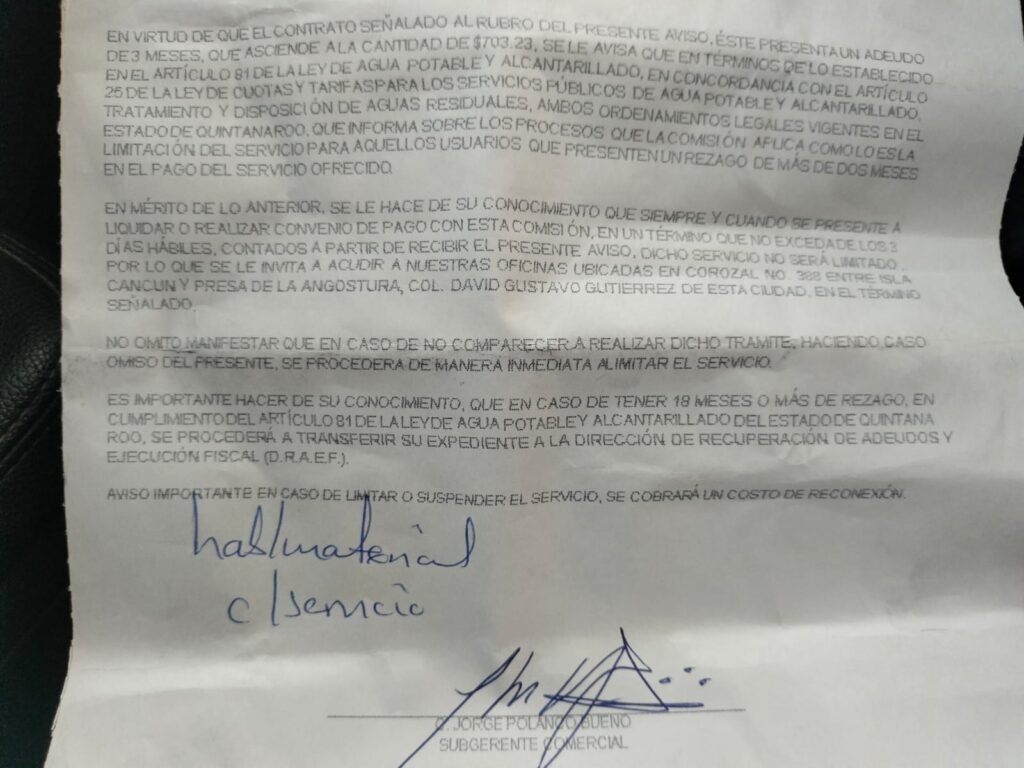 CANCÚN.- La Comisión de Agua Potable y Alcantarillado (CAPA) ha emitido miles de requerimientos de pago dirigidos a usuarios que mantienen más de dos meses de atraso en el consumo de agua potable, como parte de un operativo intensivo para recuperar cartera vencida en todo el estado.