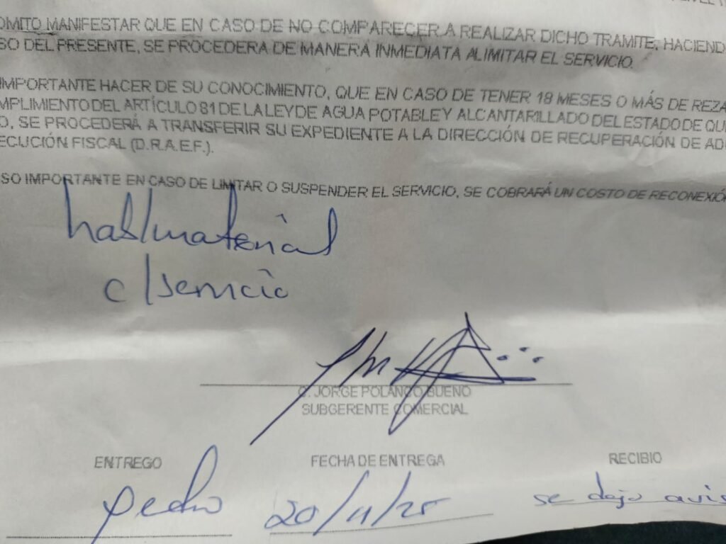 En los documentos entregados a los domicilios, la paraestatal advierte que el servicio podría ser suspendido si en un plazo de 72 horas el usuario no regulariza su situación. De acuerdo con fuentes internas de la dependencia, los avisos han sido distribuidos en los once municipios, con especial concentración en zonas donde históricamente se registra mayor morosidad.