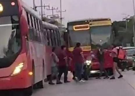 Cancún.- Un motociclista de aproximadamente 30 años de edad fue captado rompiendo la ventana de un camión de transporte público, de la ruta que lleva a la Zona Hotelera; hecho que generó después una trifulca con el operador y sus compañeros choferes.
