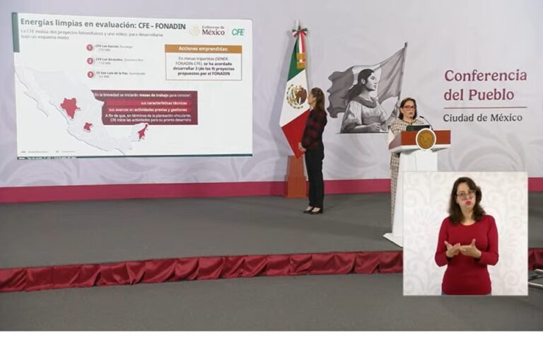 CIUDAD DE MÉXICO.- Para el próximo año, 2026, Quintana Roo está contemplado dentro de los tres proyectos para la generación de energía eléctrica limpias, reveló hoy la directora general de la Comisión Federal de Electricidad (CFE), Emilia Esther Calleja Alor, al participar en la “Mañanera del Pueblo” de la presidenta Claudia Sheinbaum Pardo.