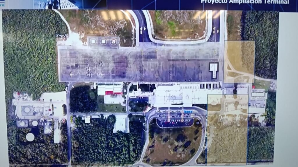Expuso que la ampliación incluye dos etapas principales: la plataforma comercial y la expansión del edificio terminal. Sin embargo, explicó que uno de los principales retos es la obtención de bancos de material en la isla para asegurar la continuidad de los trabajos.