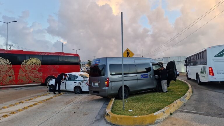 CANCÚN.- Un aparatoso hecho de tránsito se registró la mañana de este domingo sobre el bulevar Luis Donaldo Colosio, a la altura de Cancún Park, donde tres vehículos resultaron involucrados tras la pérdida de control de un autobús.