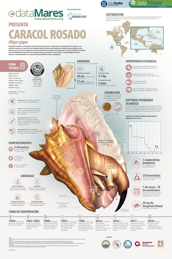 “Caracol rosa (Lobatus gigas): La pesca inicia a las 00:00 horas del 1 de diciembre de 2025 y hasta las 24:00 horas del 31 de enero de 2026 en la zona del Banco Chinchorro, en Quintana Roo, que comprende desde Punta Herrero, al norte de Mahahual, hasta Bacalar Chico, en los límites con Belice”, señala la dependencia.