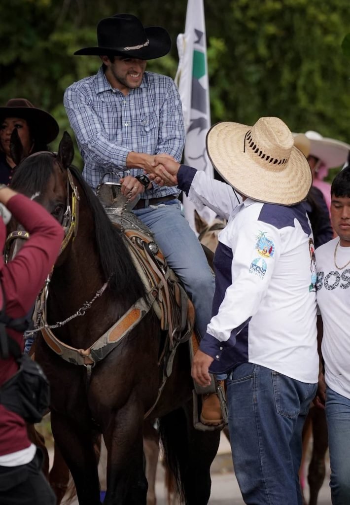 En la cabalgata participaron también funcionarios públicos como el presidente municipal, José Alfredo «Chepe» Contreras Méndez y el secretario de Desarrollo Agropecuario, Rural, Forestal y Pesca, Jorge Aguilar Osorio.