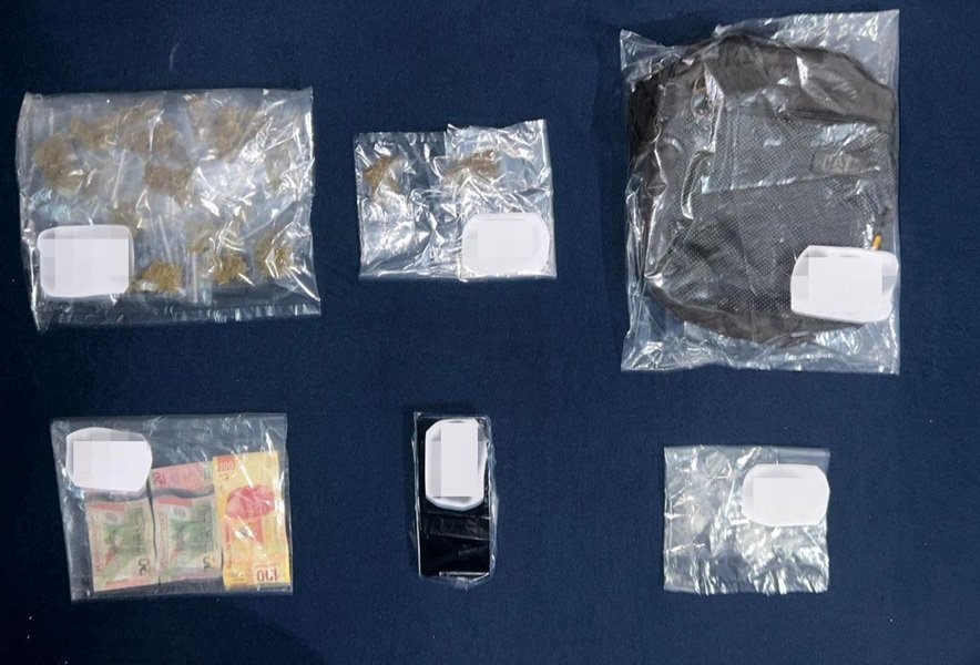 Al realizar la revisión, se les decomisaron 20 bolsitas de plástico con marihuana, una motocicleta tipo motoneta Italika, dos teléfonos celulares, una mariconera, una bolsa de mano y 500 pesos en efectivo.