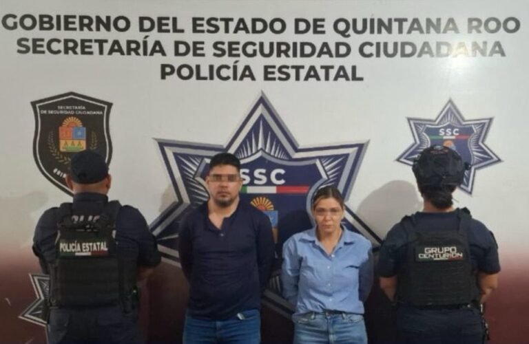 En un segundo hecho, ocurrido en el fraccionamiento Paseos del Mar en la Supermanzana 251, agentes del Grupo Centurión lograron la captura de Heriberto Andrade “N” y María Yenny “N”, ambos de nacionalidad colombiana.