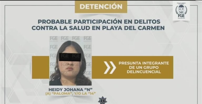 Las investigaciones señalan que la detenida presuntamente forma parte de un grupo criminal dedicado a la venta de drogas en la ciudad de Tulum, actividad que, según las autoridades, habría realizado durante más de nueve años.