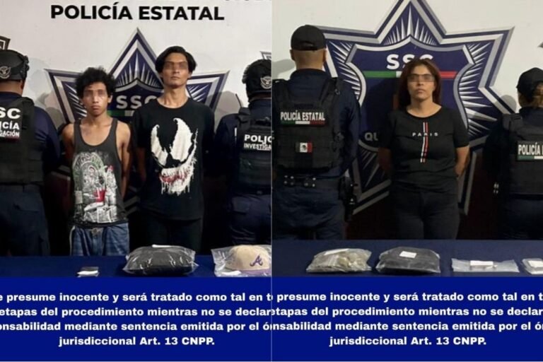 De acuerdo con los reportes oficiales, una de las detenidas es Jessica “N”, quien fue asegurada en la supermanzana 248, sobre la avenida Tules, luego de ser sorprendida manipulando una mariconera con varias bolsitas que contenían vegetal verde con las características de la marihuana.