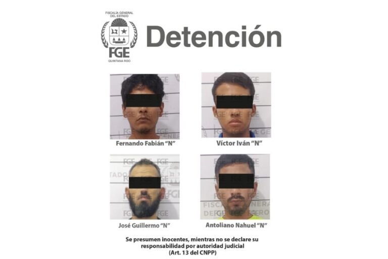 TULUM.– La Fiscalía General del Estado informa que, en coordinación con elementos de la Secretaría de la Defensa Nacional y la Policía Municipal, detuvo en flagrancia a cuatro personas por su probable participación en delitos contra la salud en la modalidad de narcomenudeo.