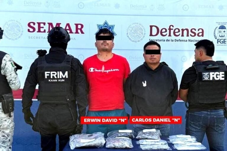 CANCÚN.– La Fiscalía General del Estado informa que en coordinación con elementos de la Guardia Nacional y Policía Municipal de Benito Juárez, fueron detenidos cuatro hombres por su probable participación en delitos contra la salud, en su modalidad de narcomenudeo.