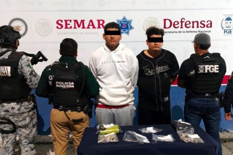 CANCÚN.- La Fiscalía General del Estado informa que, en coordinación con elementos de la Guardia Nacional y la Secretaría Municipal de Seguridad Ciudadana y Tránsito, se logró la detención de Christopher “N” y Francisco Javier “N” por su probable participación en delitos contra la salud en su modalidad de narcomenudeo.