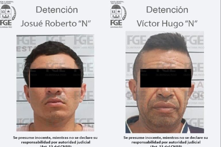 Playa del Carmen.- Policías de Investigación, adscritos a la Fiscalía General del Estado, cumplimentaron orden de aprehensión en contra de dos masculinos identificados como Josué Roberto “N” y Víctor Hugo “N”, por su presunta relación en hechos posiblemente constitutivos de los delitos de privación de la libertad agravada y lesiones calificadas, en agravio de una víctima, del sexo masculino, de identidad reservada.