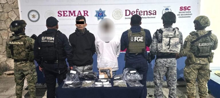 La captura se logró mediante un operativo conjunto en el que participaron elementos de la Secretaría de la Defensa Nacional (Defensa), la Secretaría de Marina (Semar), la Guardia Nacional (GN) y la Policía Municipal de Benito Juárez, lo que permitió ubicar y asegurar a los sospechosos en el fraccionamiento Bahía Real, en la zona de Arco Norte.