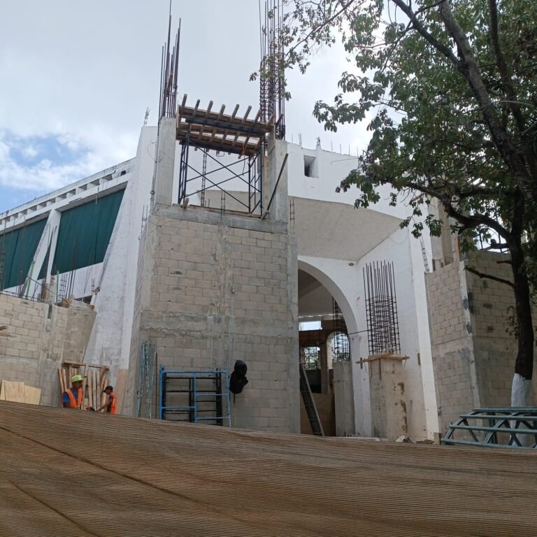 Una de estas áreas ya cuenta con techado completo, mientras que otra extensión con capacidad aproximada para 300 personas concluyó recientemente el colado de la losa del techo. En una tercera sección, con capacidad similar, continúan labores en muros, piso y estructura.