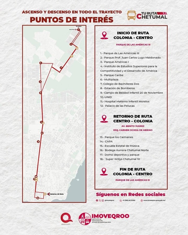El titular del IMOVEQROO, Rafael Hernández Kotasek, informó que esta ampliación responde a solicitudes de vecinos y usuarios, quienes identificaron zonas con alta afluencia de personas que requerían mejor acceso al sistema de transporte.