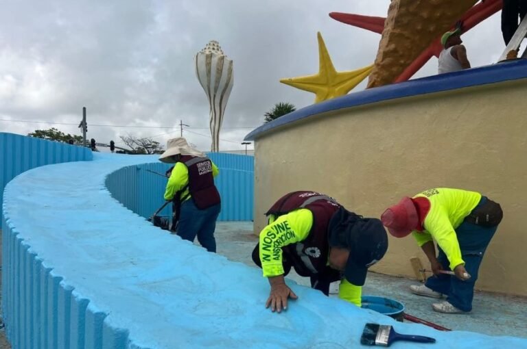 CANCÚN.- Luego de permanecer cinco semanas vandalizada, la glorieta “Fantasía caribeña”, popularmente conocida como “El Ceviche” de Cancún, fue rehabilitada nuevamente, por personal de Servicios Públicos.