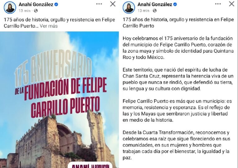 Además, señaló que hoy no se conmemora el aniversario del municipio de Felipe Carrillo Puerto, cuando en realidad es la fundación de esta localidad de la zona maya