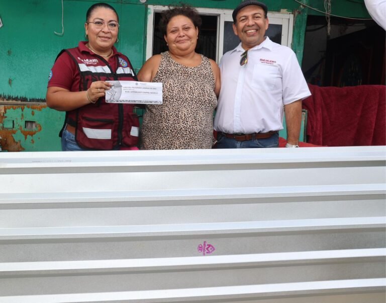 ISLA MUJERES.- El gobierno de Isla Mujeres que encabeza la presidenta municipal, Atenea Gómez Ricalde, continúa con las entregas a domicilio de láminas de zinc en beneficio de más familias del municipio, mediante el programa social impulsado para fortalecer los techos de las viviendas y mejorar la protección de los hogares isleños.