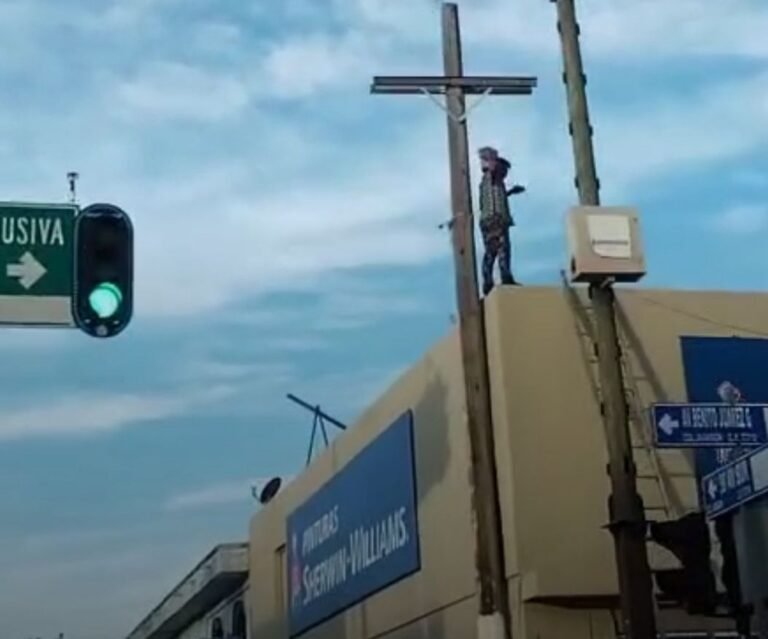 Aparentemente el sujeto, entre 35 y 40 años, intentaba tirarse al pavimento desde las 04:00 de la mañana de hoy, pero fue cerca de las 09:00 de la mañana que logró descender por voluntad propia, recibiendo el auxilio respectivo.