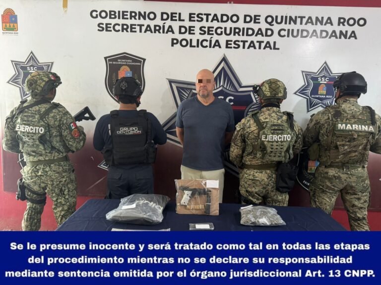 La detención fue realizada por elementos del Grupo Centurión de la Secretaría de Seguridad Ciudadana de Quintana Roo, con apoyo de la Secretaría de Marina y la Secretaría de la Defensa Nacional, durante recorridos preventivos en la zona sur de Cancún.