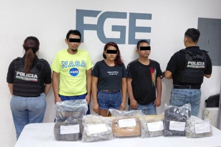 El vehículo y los indicios asegurados, así como las personas detenidas, fueron puestos a disposición del Ministerio Público; en el término constitucional previsto, definirán la situación jurídica de los tres hombres y la mujer.