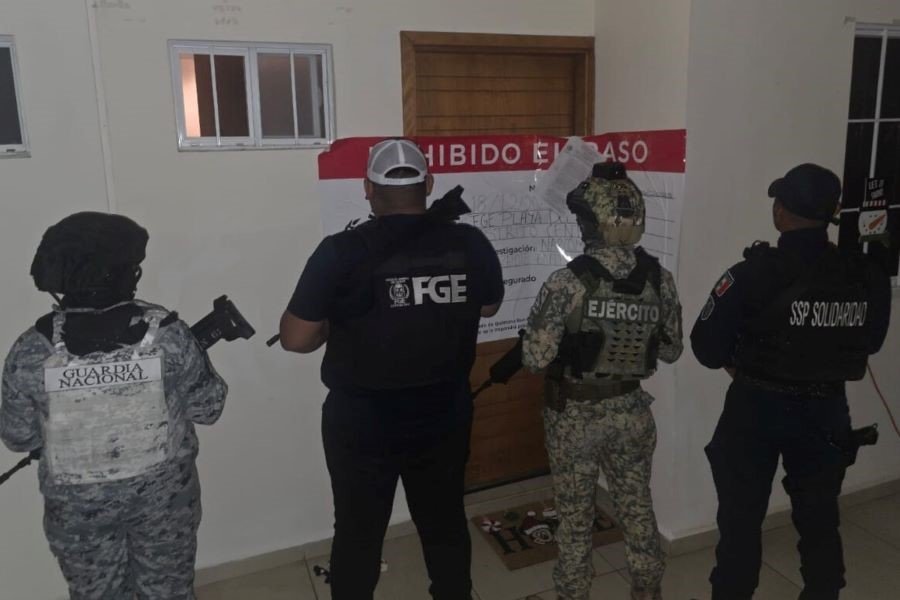 PLAYA DEL CARMEN.- Durante el cumplimiento de cuatro órdenes de cateo giradas por jueces de control, agentes de la Fiscalía General del Estado, en coordinación con elementos de la Secretaría de la Defensa Nacional, Guardia Nacional, Secretaría de Marina, policías estatales y municipales, aseguraron sustancias similares a drogas y un vehículo.