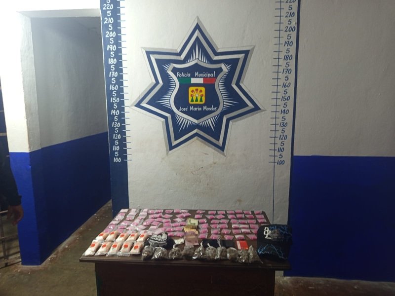 JOSÉ MARÍA MORELOS.- Más de 2 mil dosis de droga fueron encontradas la noche de este viernes al interior de una camioneta tipo Van, del sindicato de taxistas “Francisco May”, en un filtro de seguridad ubicado en el acceso de José María Morelos, rumbo a Polyuc. Hay un pasajero detenido.