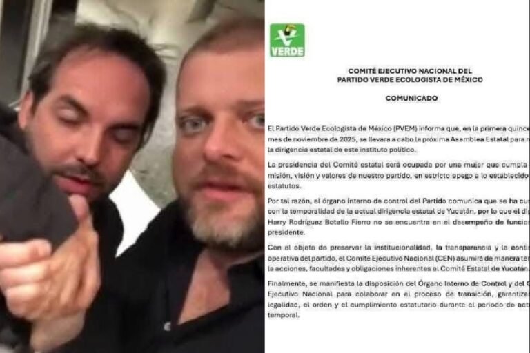 Mientras tanto, el Comité Ejecutivo Nacional (CEN) del PVEM asumirá de manera temporal la dirigencia en Yucatán, hasta que se concrete el relevo oficial. En un comunicado, el CEN afirmó que el partido “sigue creciendo con legalidad, orden y compromiso con Yucatán”.
