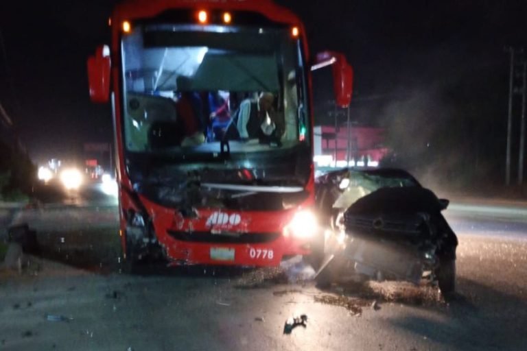 En sentido opuesto, es decir hacia el centro de Cancún, llegaba la unidad de pasaje de la empresa ADO, con número económico 0778, cuyo conductor no logró esquivar al vehículo impactándolo en el costado.