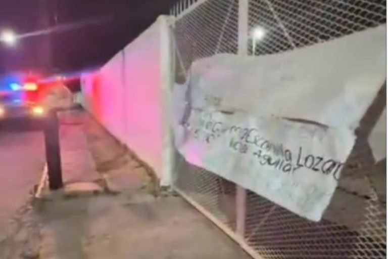 Al lugar arribaron elementos de la policía estatal, quienes se encargaron de quitar la manta que fue colocada en la puerta de un campo deportivo.