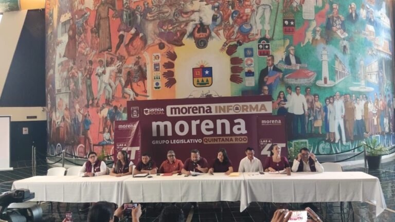 Fue Jorge Sanén Cervantes, líder del grupo parlamentario de Morena en el Congreso local, quien está mañana encabezó la rueda de prensa «Las 4 de la 4” en el Congreso de Quintana Roo.