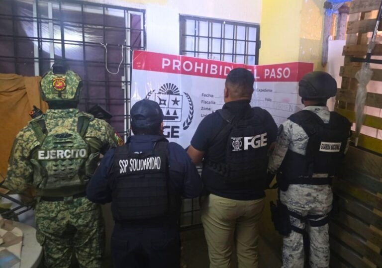 Tras concluir las diligencias, los inmuebles quedaron asegurados con los sellos correspondientes, mientras que los siete detenidos fueron puestos a disposición de la autoridad ministerial, que determinará su situación jurídica en el plazo constitucional.