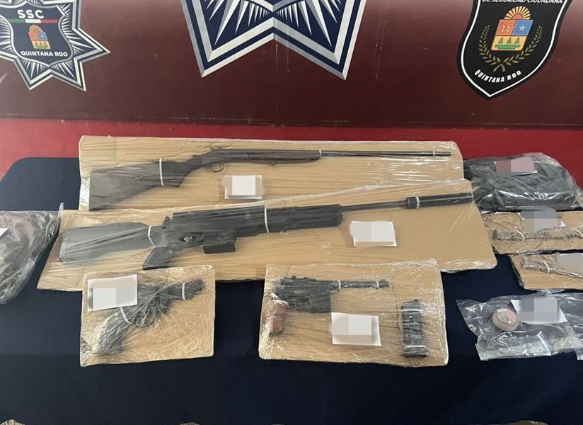 CANCÚN. – Elementos del Grupo Orión de la Secretaría de Seguridad Ciudadana (SSC), en coordinación con la Secretaría de Marina (Semar), detuvieron a Joaquín “N” y Héctor Rafael “N”, por su presunta participación en el delito de violación a la Ley Federal de Armas de Fuego y Explosivos.