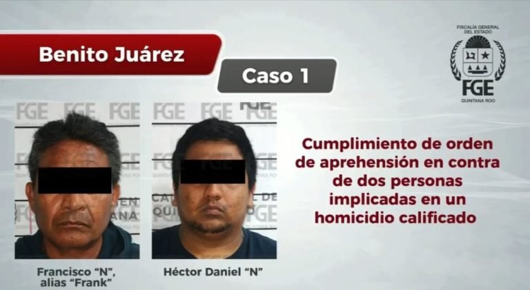 CANCÚN.- Policías de Investigación detuvieron a Francisco N, alias «Frank», de 51 años, y su hijo Héctor Daniel N, de 25 años, ambos originarios de Tabasco, por su presunta responsabilidad en el homicidio calificado de un coordinador de mototaxistas ocurrido el pasado 5 de mayo en el fraccionamiento Villas Otoch Paraíso.