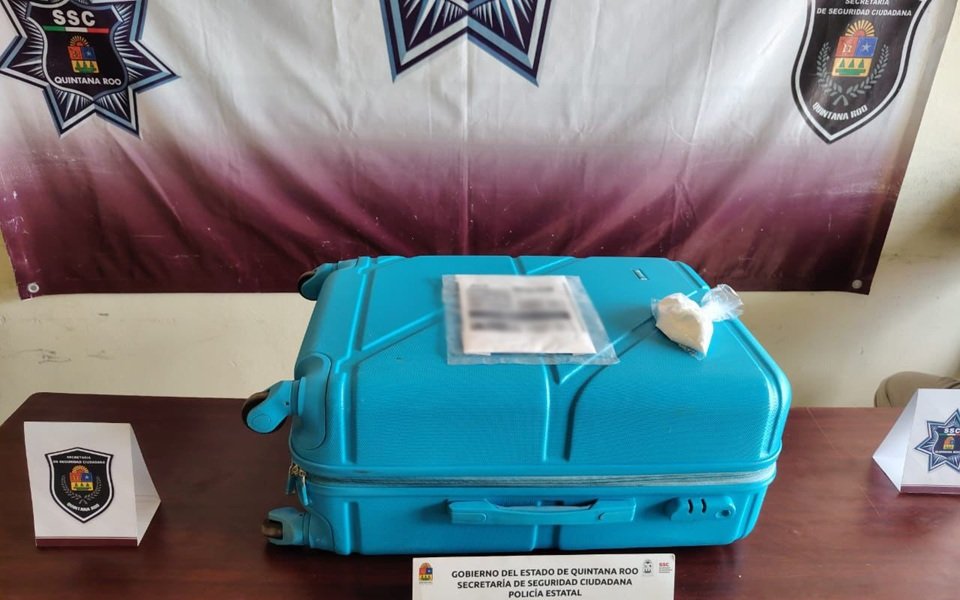 TULUM.- Elementos del Grupo Canino K-9 de la Secretaría de Seguridad Ciudadana, detuvieron a un hombre identificado como Mauricio “N”, presunto implicado en delitos contra la salud, luego de que se le asegurara una maleta que contenía droga durante una inspección en la central de autobuses ADO.