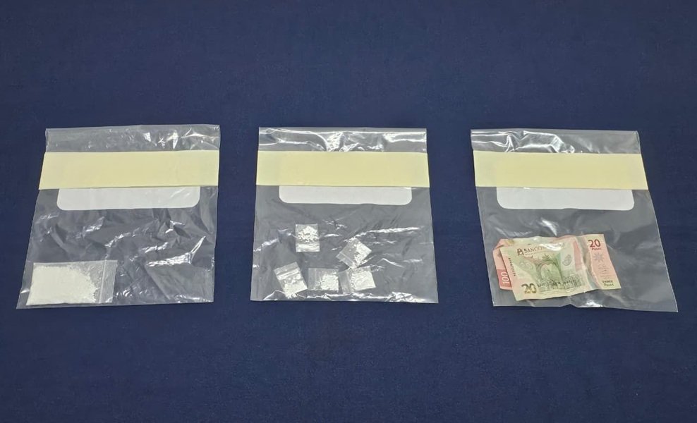Como resultado de la inspección, fueron aseguradas una bolsa de plástico de aproximadamente 12 por 7 centímetros y cinco bolsitas transparentes de 3.5 por 2.5 centímetros, todas con polvo blanco similar a la cocaína, además de 140 pesos en efectivo y una motocicleta marca Vento, tipo Cross, color negro, que no contaba con placas de circulación.
