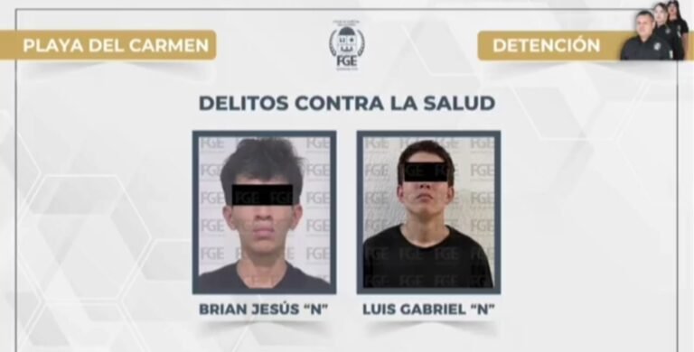 PLAYA DEL CARMEN – Elementos de la Policía de Investigación de la Fiscalía General del Estado de Quintana Roo detuvieron el pasado 22 de abril a dos presuntos integrantes de una pandilla en el fraccionamiento Villas del Sol, en Playa del Carmen, por su probable participación en delitos contra la salud.