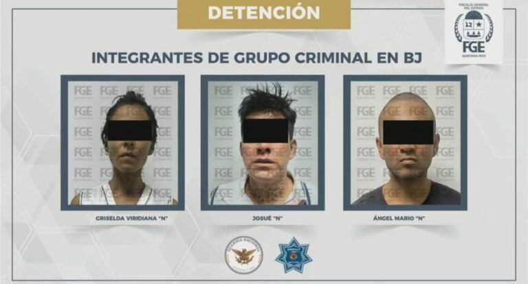 De acuerdo con el fiscal, en acciones coordinadas entre la Policía de Investigación de la Fiscalía General del Estado, la Guardia Nacional y la Policía Municipal, fueron capturados Griselda Viridiana, alias “La Flaca”, de 35 años, originaria de Guanajuato; Josué, alias “El Pelón”, de 33 años, originario de Veracruz, y Ángel Mario, también de Veracruz, en operativos realizados en la colonia El Milagro y la Supermanzana 248.