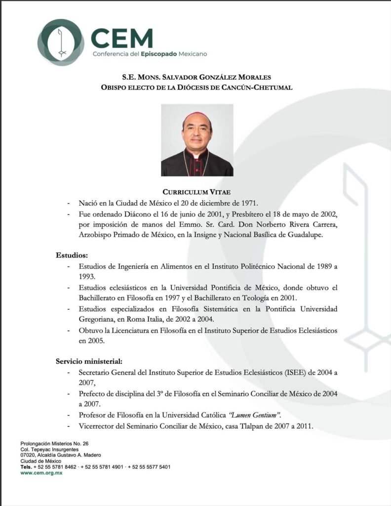Salvador González, originario de Ciudad de México y de 51 años, fungía desde 2019 como obispo auxiliar de la Arquidiócesis de México, donde es conocido como “Chavita”.