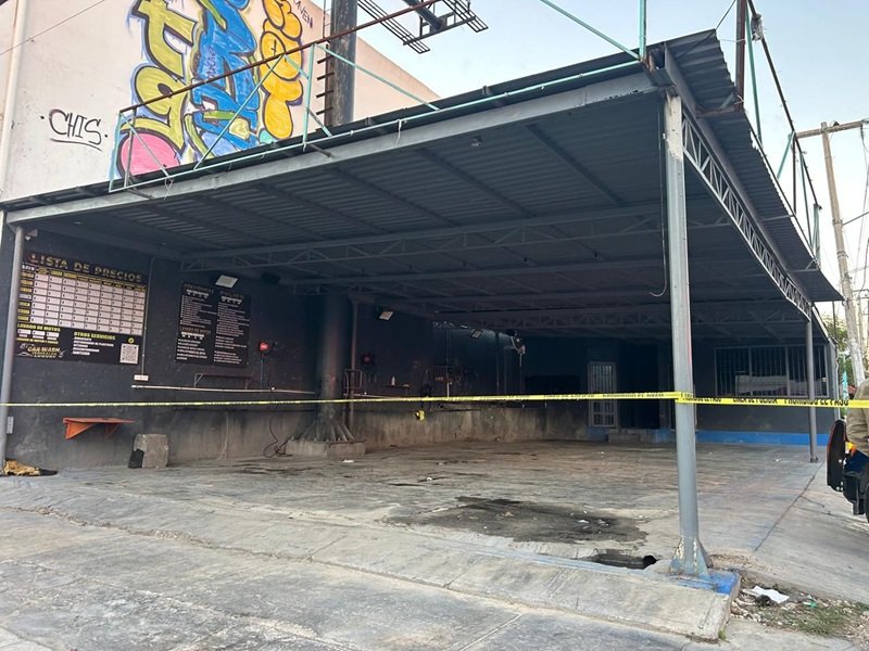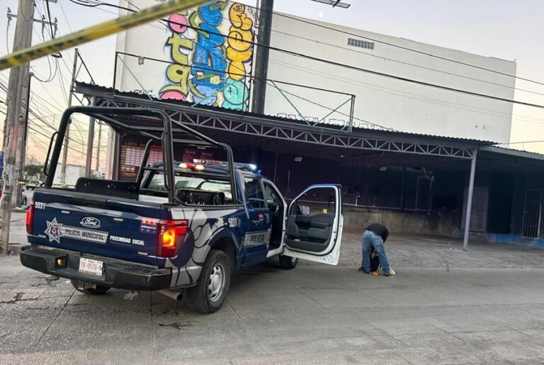 Al arribar al lugar, peritos especializados realizaron el procesamiento del área y localizaron al menos ocho casquillos percutidos, dispersos tanto en la carpeta asfáltica como sobre la banqueta, lo que confirmó la agresión directa contra la fachada del negocio.