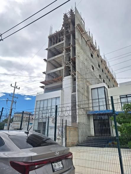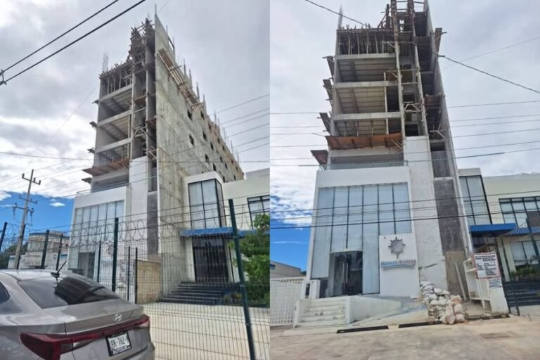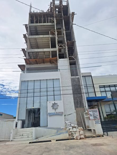 De acuerdo con su licencia de construcción, la obra está registrada como “edificio de departamentos”, aunque en la planta baja ya opera un negocio bajo el logotipo de “Mariscos Boutique”, lo que sugiere un uso distinto al autorizado.