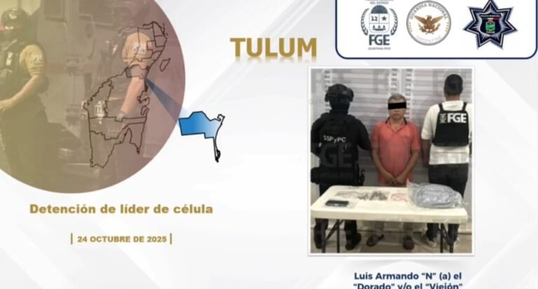 Las autoridades estatales destacaron que la captura de “El Viejón” representa un golpe importante contra las estructuras criminales que operan en el municipio de Tulum, particularmente aquellas vinculadas con delitos de extorsión, narcomenudeo y violencia.
