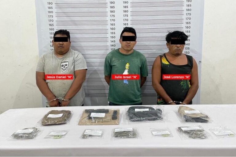 TULUM.- La Fiscalía General del Estado de Quintana Roo informa que tras una denuncia anónima, elementos de la Policía de Investigación, en coordinación con elementos de la Secretaría de la Defensa Nacional y Policía Municipal, lograron la detención en flagrancia de Jesús Daniel “N”, Julio Israel “N” y José Lorenzo “N”, en la comunidad de Francisco Uh May, municipio de Tulum en posesión de narcóticos y un arma de fuego.