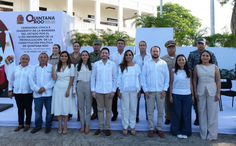 “Aquí, en Chetumal, nuestra capital y sede de los poderes públicos, recordamos los orígenes del marco jurídico que sostiene a un estado joven, pero fuerte, progresista y profundamente humanista”, expresó la Gobernadora Mara Lezama Espinosa, al señalar que la Constitución representa “un pacto vivo entre la sociedad y el poder público”.