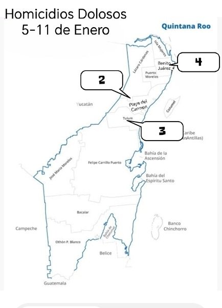 Con base en estos hechos y tomando como referencia los datos del Censo de Población y Vivienda 2020 del INEGI, Tulum se ubicó como el municipio más violento de la semana al registrar la mayor tasa de homicidios dolosos por cada 100 mil habitantes, con aproximadamente 6.4 homicidios, al contabilizar tres asesinatos en una población de 46 mil 721 personas.