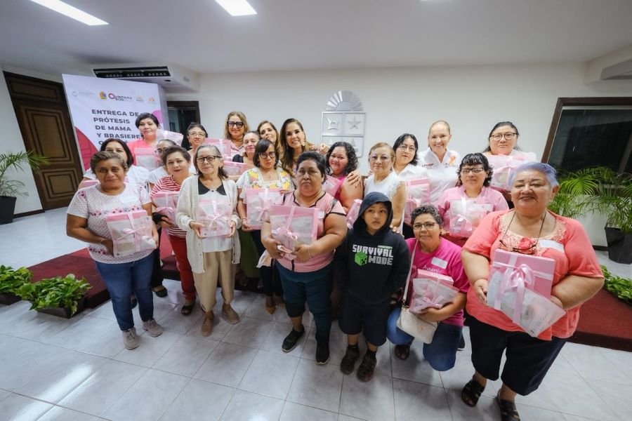 CHETUMAL.- Al encabezar la entrega de 66 prótesis de mama y 124 brasieres ortopédicos a mujeres de Othón P. Blanco que han padecido cáncer de mama, la gobernadora Mara Lezama Espinosa destacó que más que un apoyo médico, reciben una herramienta para reencontrarse con su cuerpo.